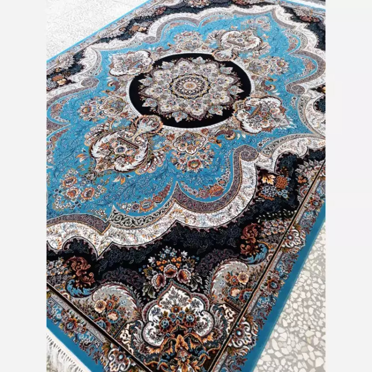 فرش ماشینی طرح۷۰۰شانه طرح شهیاد آبی9متری
